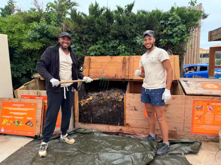 Comme l’impose la loi sur la gestion des biodéchets en camping depuis 2024, nos établissements doivent désormais proposer un espace de compostage. Deux employés ont donc passé un diplôme auprès de l’EBE l’abeille verte à Lodève pour devenir référents.