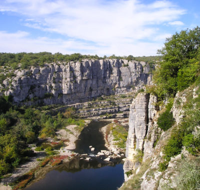 - Le cirque de Gens propose un cadre exceptionnel pour la baignade et l’escalade, avec ses falaises impressionnantes bordant la rivière Ardèche.