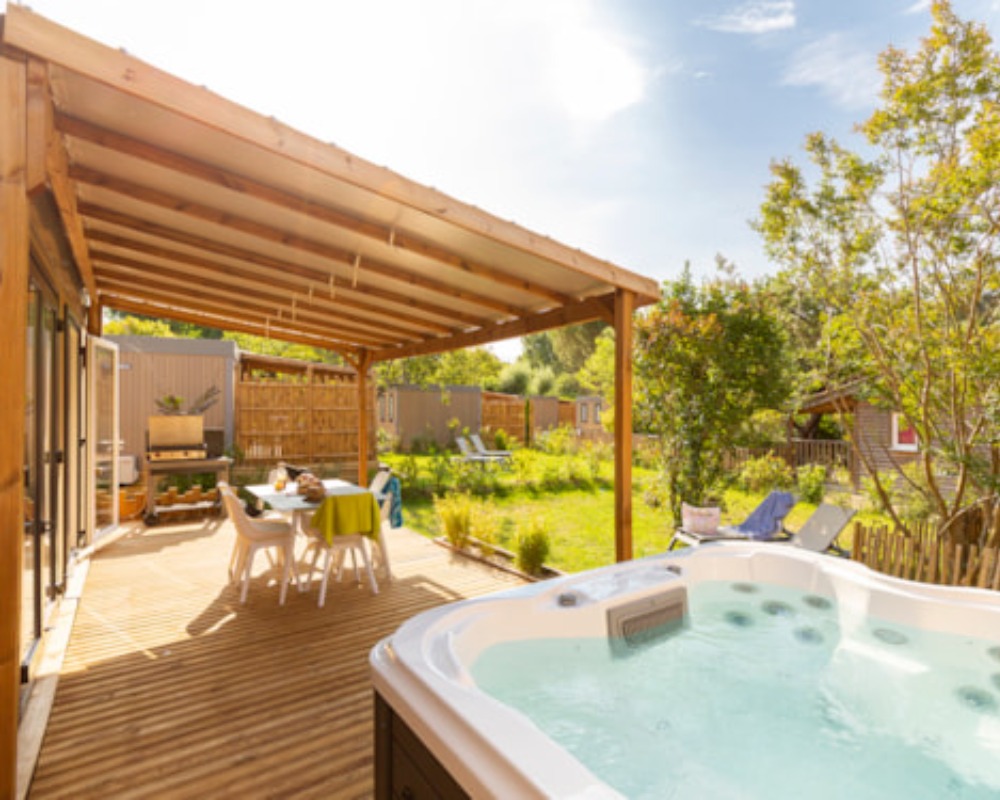 Le domaine propose une sélection d’hébergements de caractère mêlant bois, matériaux naturels et design chaleureux. Les lodges panoramiques, intégrés dans le paysage, offrent une vue magnifique sur la Drôme et un confort premium : literie haut de gamme, belle terrasse en bois, espace intérieur lumineux et décor naturel. Les chalets éco-confort séduisent par leur ambiance cocooning, leur équipement complet et leur architecture harmonieuse. Chaque hébergement respecte l’environnement grâce à une conception durable et une intégration discrète. Parfait pour vivre l’esprit cottage dans une atmosphère apaisée et élégante.