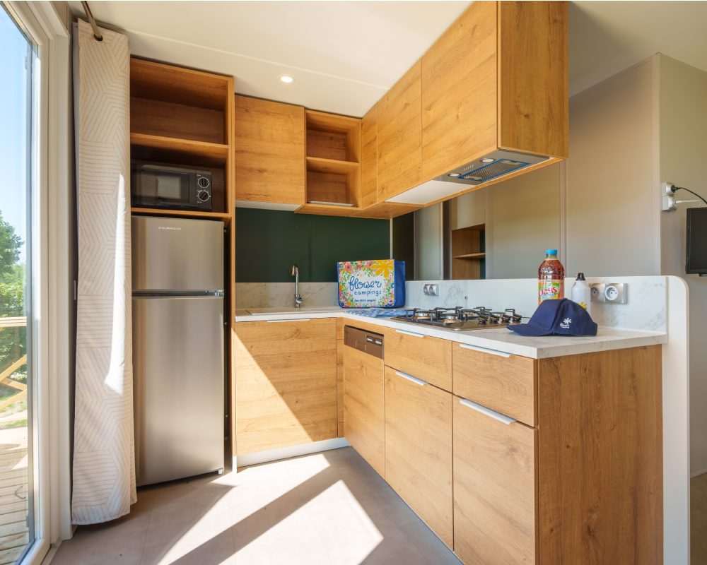 Le Parc de la Hallerais propose une gamme d’hébergements premium parfaitement intégrés au décor boisé du domaine. Chalets chaleureux, cottages récents ou mobil-homes contemporains… chaque location a été pensée pour associer confort moderne et esprit nature. Terrasses en bois spacieuses, salons lumineux, literie de qualité, équipements complets : tout est réuni pour un séjour élégant et reposant. Certains hébergements offrent même une vue dégagée sur la vallée ou des espaces extérieurs privatifs invitant à la détente. Idéal pour les familles, couples ou amis en recherche d’un hébergement raffiné et apaisant en pleine harmonie avec l’environnement breton.