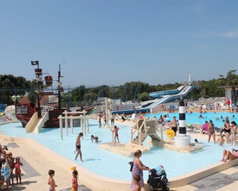 Le Camping L’Anse des Pins propose un grand parc aquatique avec piscine chauffée, toboggans, pataugeoire et espace détente. Les vacanciers profitent également de nombreuses activités : club enfants, animations sportives, cours de fitness, soirées musicales et spectacles estivaux. Sur place : bar, restaurant, snack, supérette, location de vélos, accès direct à la plage et grande aire de jeux. Le tout dans un esprit familial, dynamique et éco-chic afin d’assurer confort et qualité. Les sentiers cyclables rejoignent directement le réseau “Vélodyssée”, idéal pour découvrir l’île autrement.