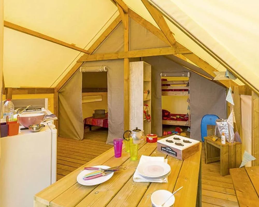 Le camping propose une large gamme de mobil-homes contemporains, spacieux et parfaitement équipés pour un séjour serein sur l’île. Les hébergements sont installés sous les pins, dans des allées calmes, et disposent de terrasses conviviales, parfois semi-couverts, idéales pour les repas au grand air. Chaque location offre un niveau de confort moderne : climatisation selon gamme, cuisine équipée, chambres douillettes, salon lumineux et salle d’eau fonctionnelle. Certains modèles premium proposent une vue nature exceptionnelle, tandis que d’autres se situent à proximité directe de l’espace aquatique ou de la plage. Un hébergement pensé pour sublimer vos vacances en bord de mer.