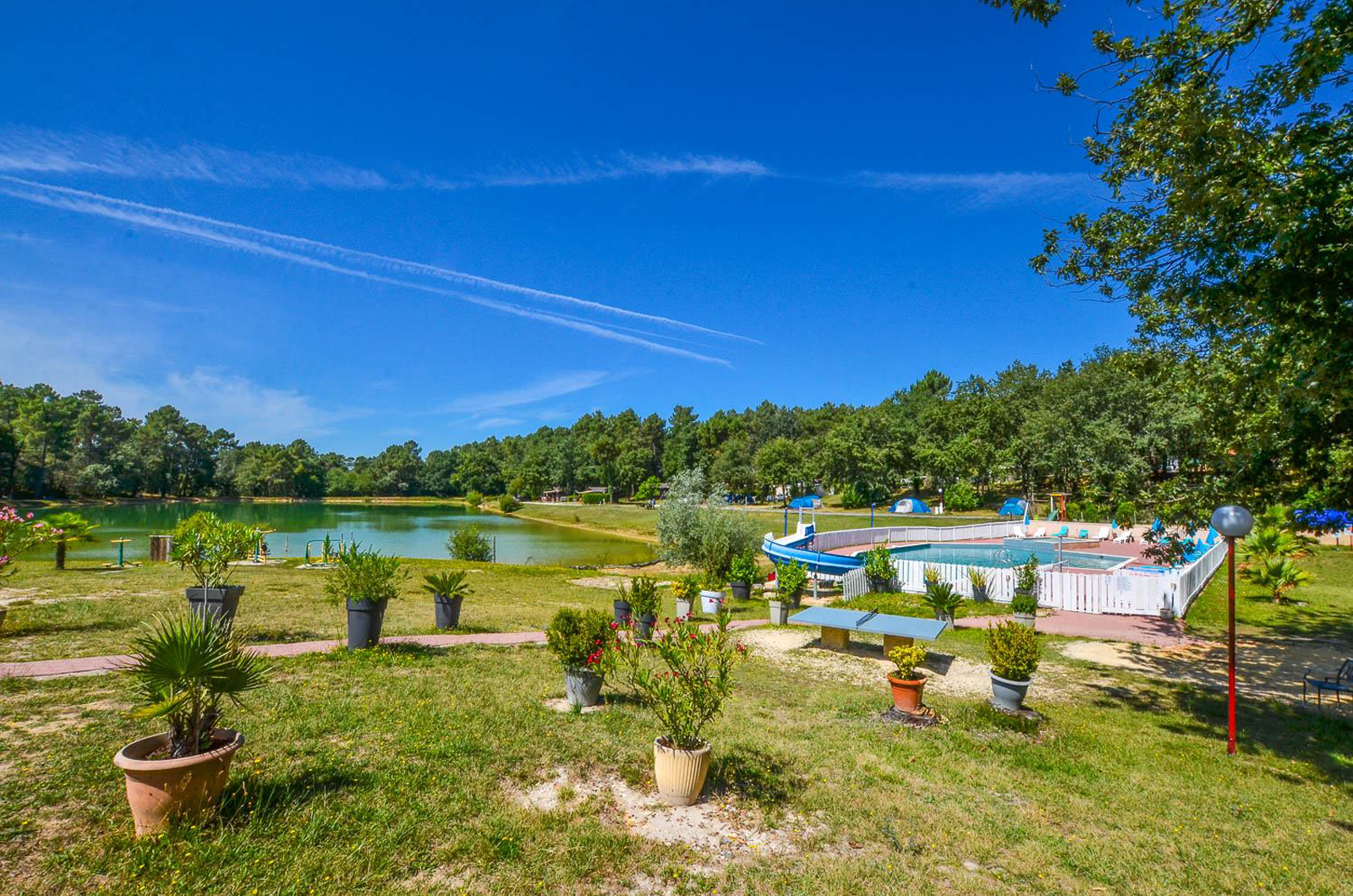 Le camping, niché au cœur de la nature, est un véritable havre de paix : très arboré, entouré d’une végétation magnifique, avec un bel étang qui apporte beaucoup de charme et de sérénité. Nous avons adoré profiter du terrain de pétanque pour partager des moments conviviaux, et de la piscine idéale pour se détendre et se rafraîchir.
