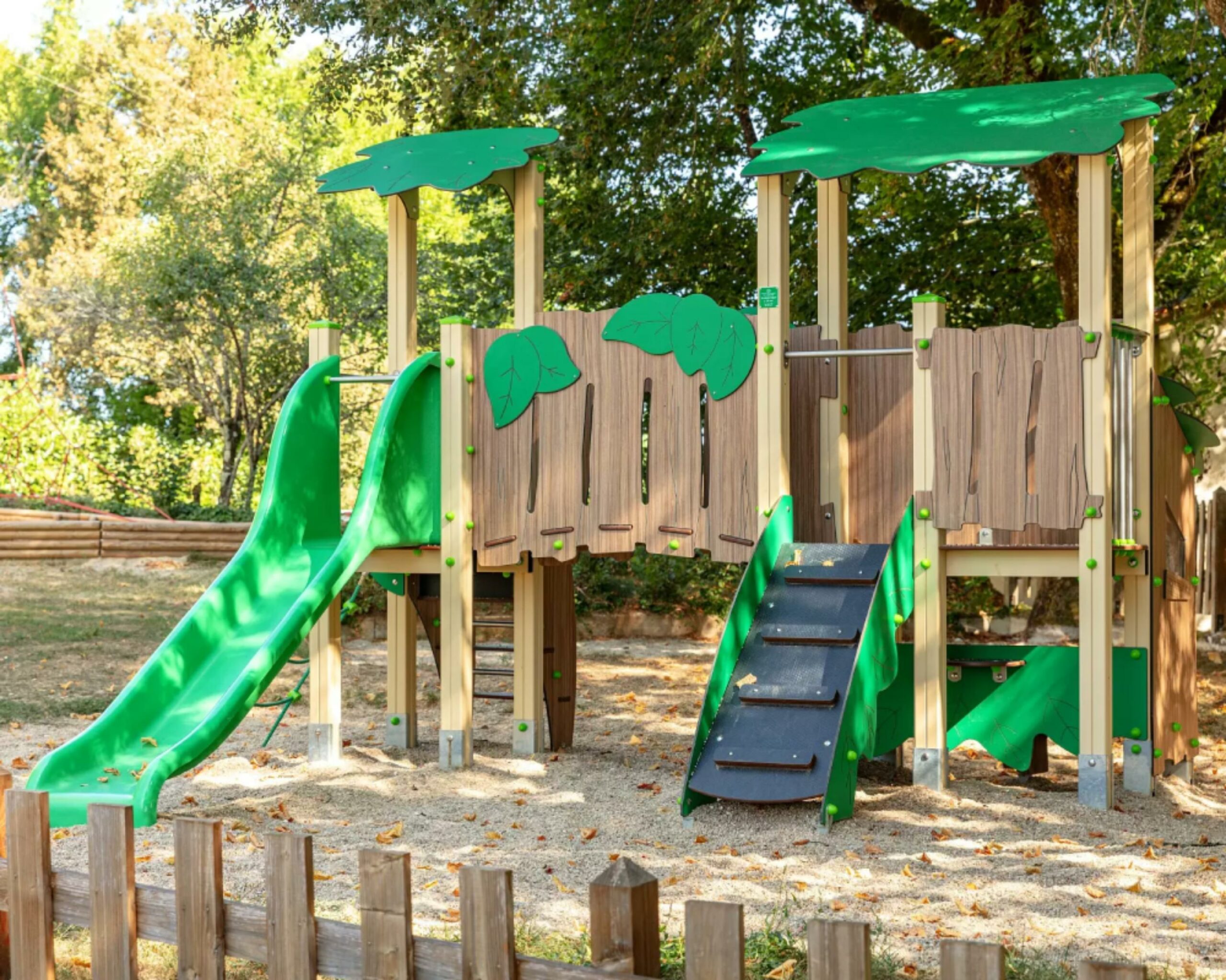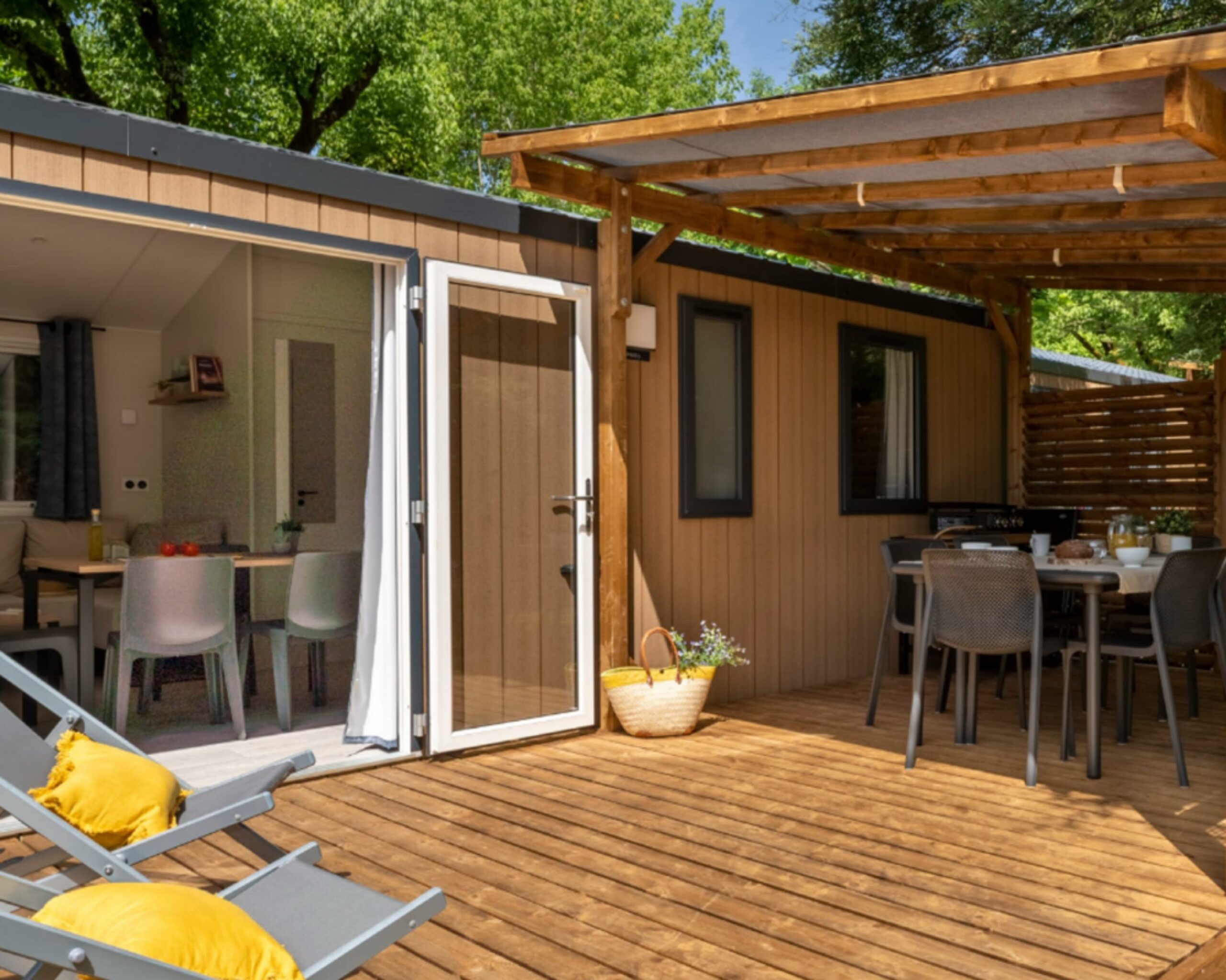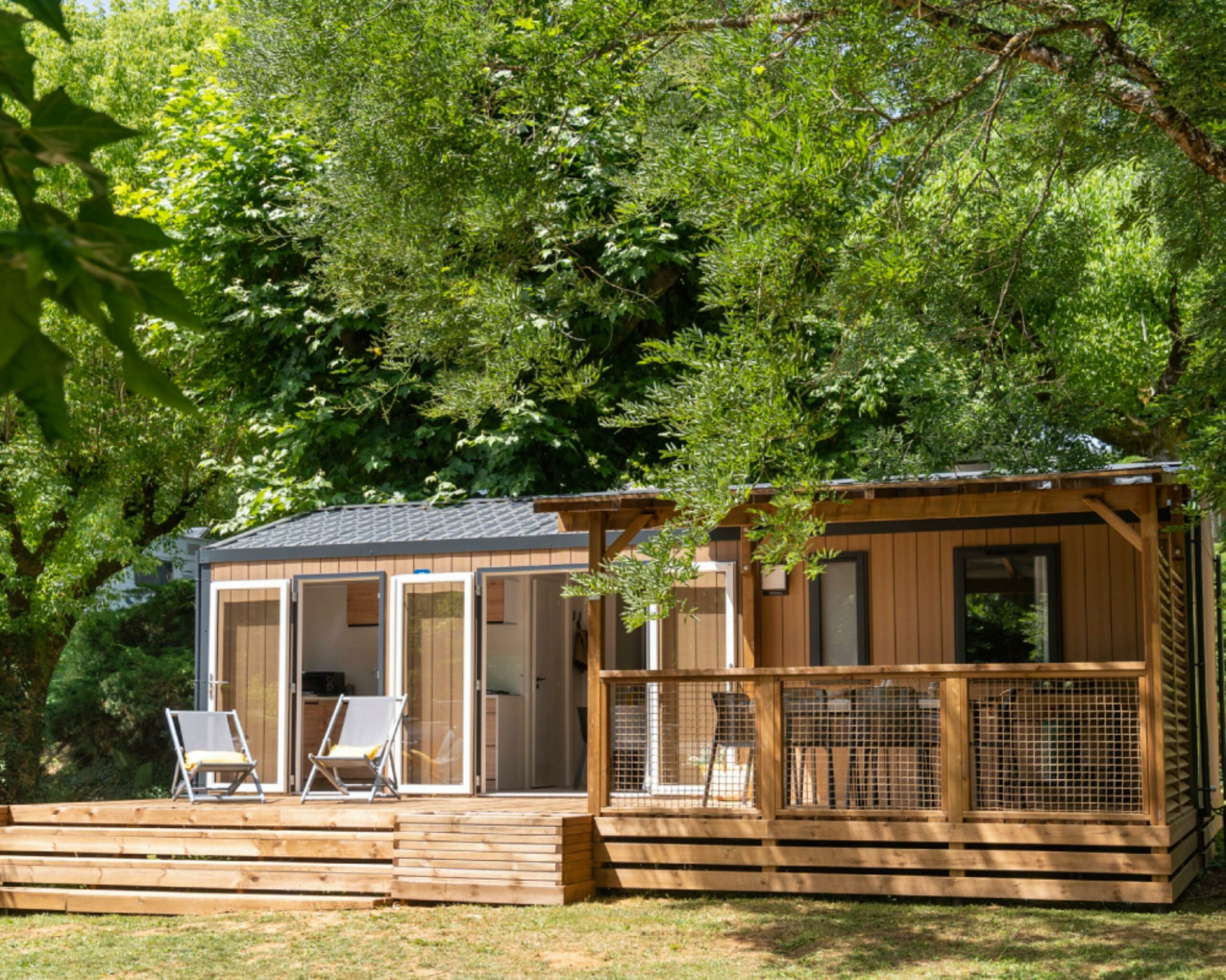 Le camping propose une belle variété d’hébergements en dur : mobil-homes récents, chalets bois chaleureux, cottages familiaux et lodges premium parfaitement intégrés dans la végétation. Chaque location dispose d’une terrasse ombragée, d’un espace extérieur aménagé, d’une cuisine équipée, de chambres confortables et d’une atmosphère lumineuse. Les hébergements supérieurs offrent davantage d’espace, une literie haut de gamme, des rangements optimisés et parfois même une vue dégagée sur la campagne périgourdine. L’ensemble est conçu pour vivre un séjour éco-chic, entre charme du bois, confort moderne et immersion totale dans la nature.