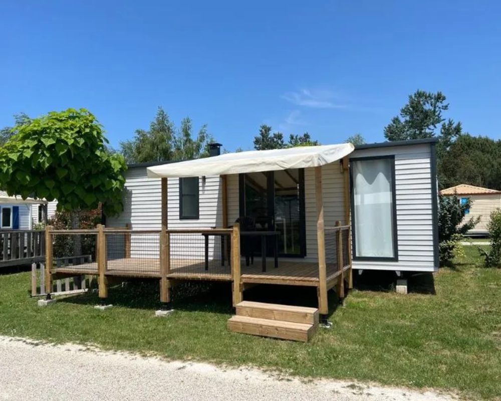 Le camping propose une gamme de mobil-homes récents et lumineux, conçus pour allier confort moderne et intégration naturelle. Terrasses bois, grandes baies vitrées, espaces fluides : chaque hébergement offre un véritable cocon au cœur des pins. Les modèles varient selon les besoins : du mobil-home compact pour couples au modèle familial avec plusieurs chambres. Climatisation selon gamme, literie de qualité, cuisine équipée, salon cosy et terrasse ombragée permettent de profiter pleinement du plein air dans un esprit éco-chic. Une solution idéale pour ceux qui recherchent la tranquillité tout en conservant le confort d’un séjour en locatif haut de gamme.