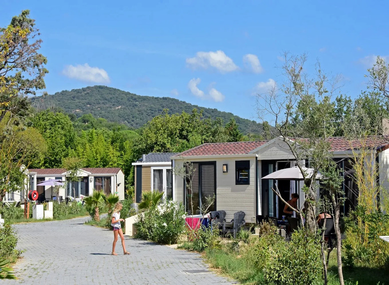 Le domaine propose une large gamme de mobil-homes modernes et confortables, parfaitement intégrés dans la végétation méditerranéenne. Chaque hébergement dispose d’une terrasse extérieure, d’une cuisine équipée, d’une literie de qualité et d’espaces de vie lumineux. Les modèles premium offrent une décoration soignée, un niveau de confort renforcé et parfois une vue dégagée sur les collines environnantes. Conçus pour accueillir de 2 à 8 personnes, ces hébergements permettent de profiter d’un séjour chic, pratique et totalement tourné vers le plein air, tout en bénéficiant d’un confort hôtelier.