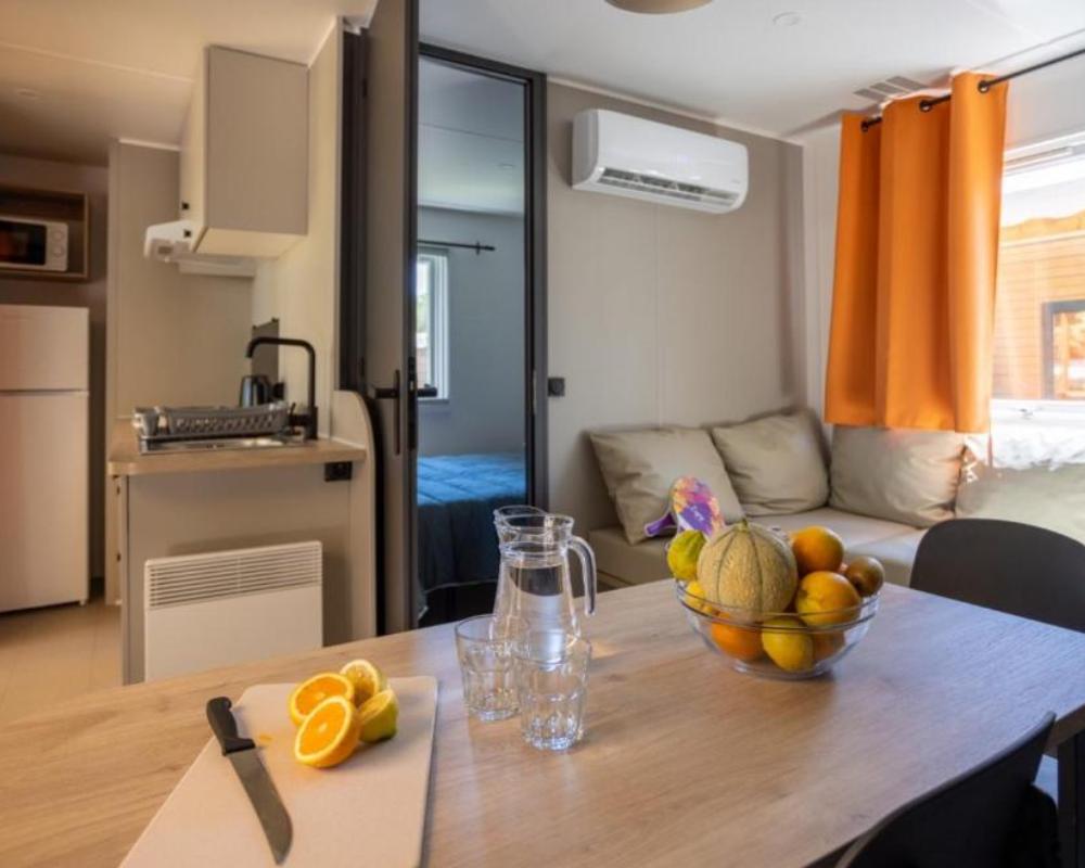 Le camping propose une variété d’hébergements parfaitement intégrés à la pinède : mobil-homes récents, cottages familiaux, studios et locations de charme au style provençal. Tous disposent d’une terrasse extérieure, d’un aménagement intérieur fonctionnel, d’une bonne literie et d’une cuisine équipée pour un séjour sans contraintes. Les gammes premium offrent davantage d’espace, de modernité et d’intimité, avec climatisation et espaces extérieurs plus généreux. Chaque hébergement privilégie la lumière naturelle, le confort et la sérénité, pour vivre une parenthèse relaxante dans un cadre naturel et raffiné.
