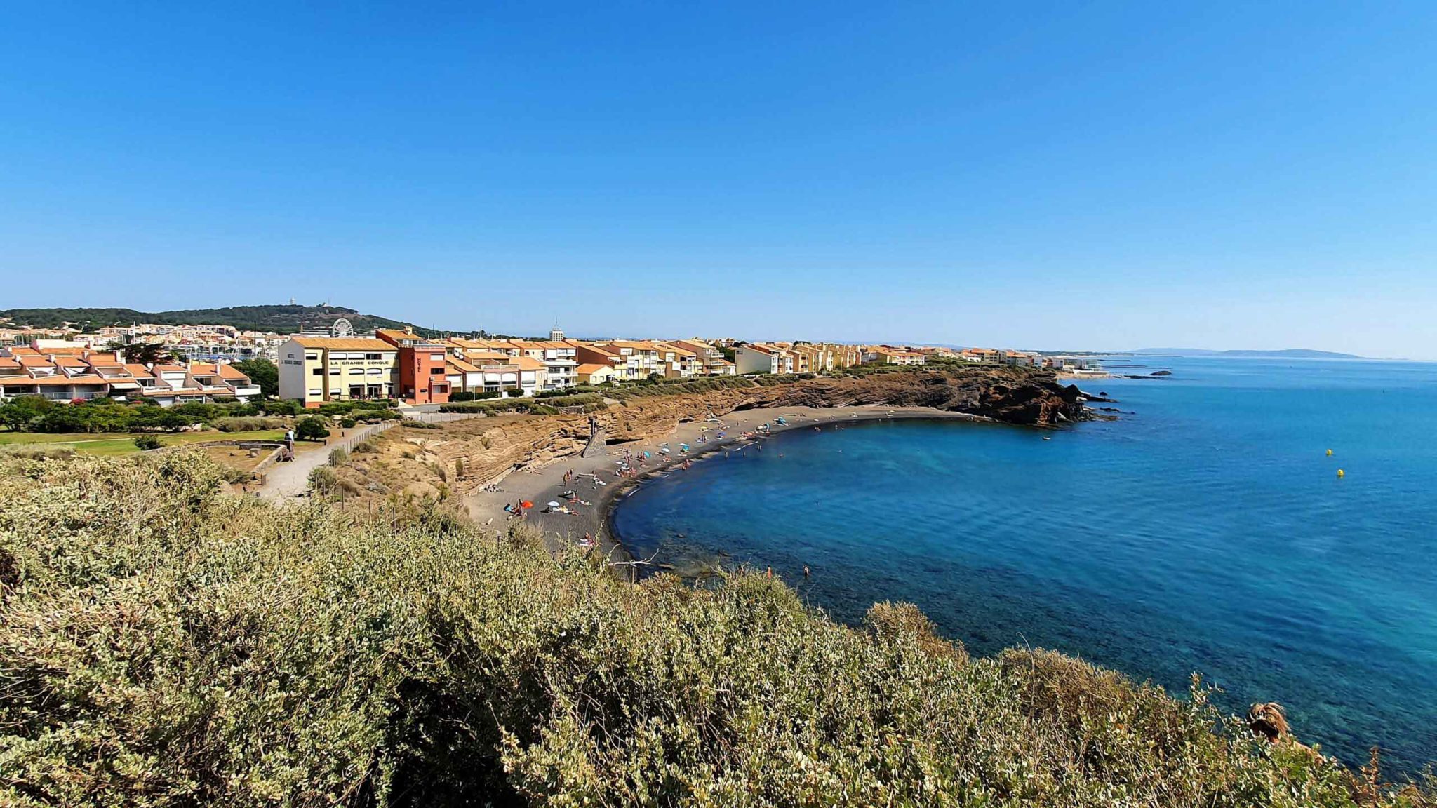 Située au Cap d’Agde, non loin du Mont Saint-Loup, ancien volcan, elle se démarque par son sable noir.